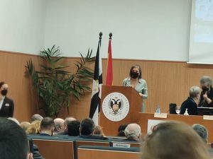 Con motivo del 20 aniversario de la creación del Colegio Oficial de la Psicología de Ceuta, la Universidad de Granada, a través de su Excelentísima y Magnífica Rectora, Pilar Aranda, entregó una placa conmemorativa a la Decana del COPCE, Doña Dolores C. Escalante Ojeda, quien pronunció unas palabras haciendo un recorrido por las etapas y labor de afianzamiento y servicios.